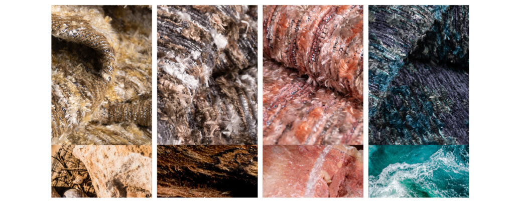 Picasso is a fabric with a multilayered, organic structure inspired by amber, tree bark, ocean waves, and forest floor textures. Its surface is not uniform. It moves. It builds depth. Up close, it reveals nuances; from a distance, it forms a calm, mineral plane.