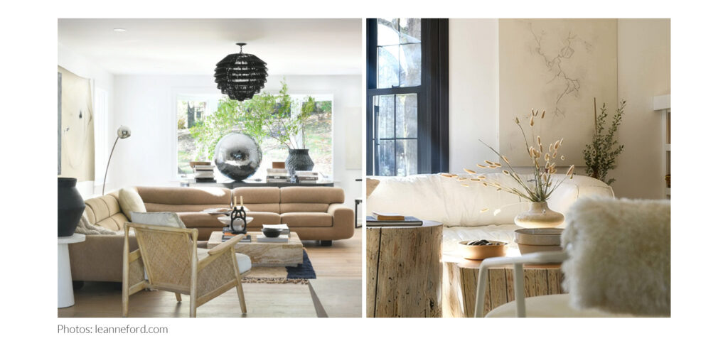 Biomorphism needs a counterpoint. That is why organic modern so often works with a raw, neutral base: earthy beiges, taupe, mineral browns, muted greens. Wood with pronounced grain. Stone with visible veins.