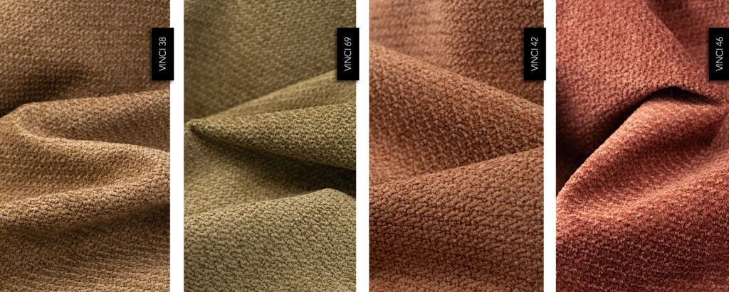 Within this landscape of colors, a special role is played by textural fabrics with pronounced weaves, reliefs, and soft piles.