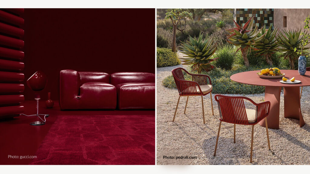- Gucci introduced a series of furniture pieces in its debut collection in the rich shade of “Ancora Red” – a deep red tone that reinterprets classic design forms.