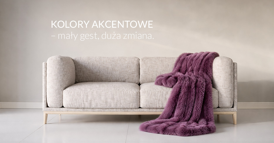 Jeden aksamitny koc w kolorze głębokiej śliwki rzucony na jasnoszarą sofę przesuwa energię pomieszczenia z „neutralnego i pustego” na „bogate i zmysłowe”. Dwie poduszki w kolorze ciepłej miedzi na białej kanapie tworzą ogniskową dla wzroku i dodają przestrzeni temperatury emocjonalnej. To tzw. kolor akcentowy, który w psychologii wnętrz pełni rolę podobną do znaku interpunkcyjnego: decyduje o rytmie i tonie całego zdania.