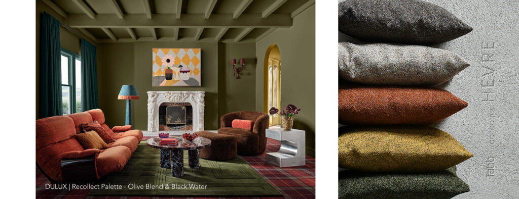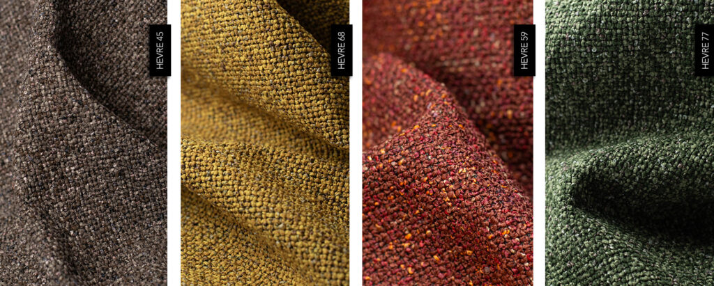 Hevre pairs beautifully with velvets (Bluvel, Mavel), creating an effect of contemporary luxury that doesn’t rely on shine.