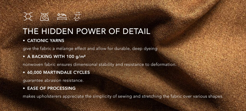 It is in this spirit that NEXI was created – a fabric with a classic weave and a melange effect reminiscent of natural canvas.
