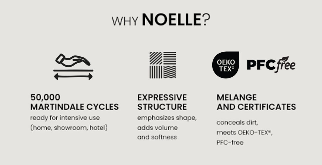 Chenille Noelle is designed for manufacturers who want furniture to be both aesthetic and practical – without compromises in production or use.