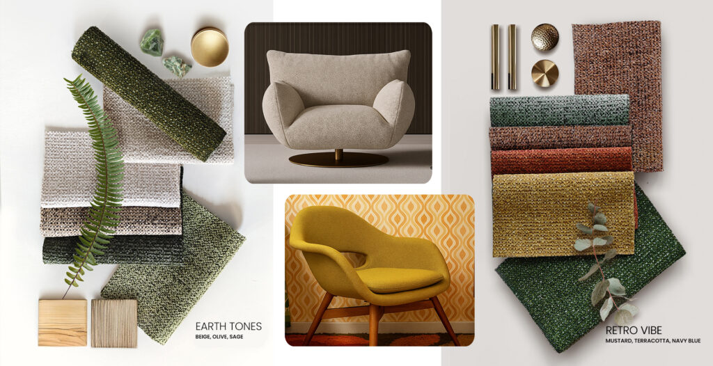 · Retro vibe – mustard, terracotta, smoky navy